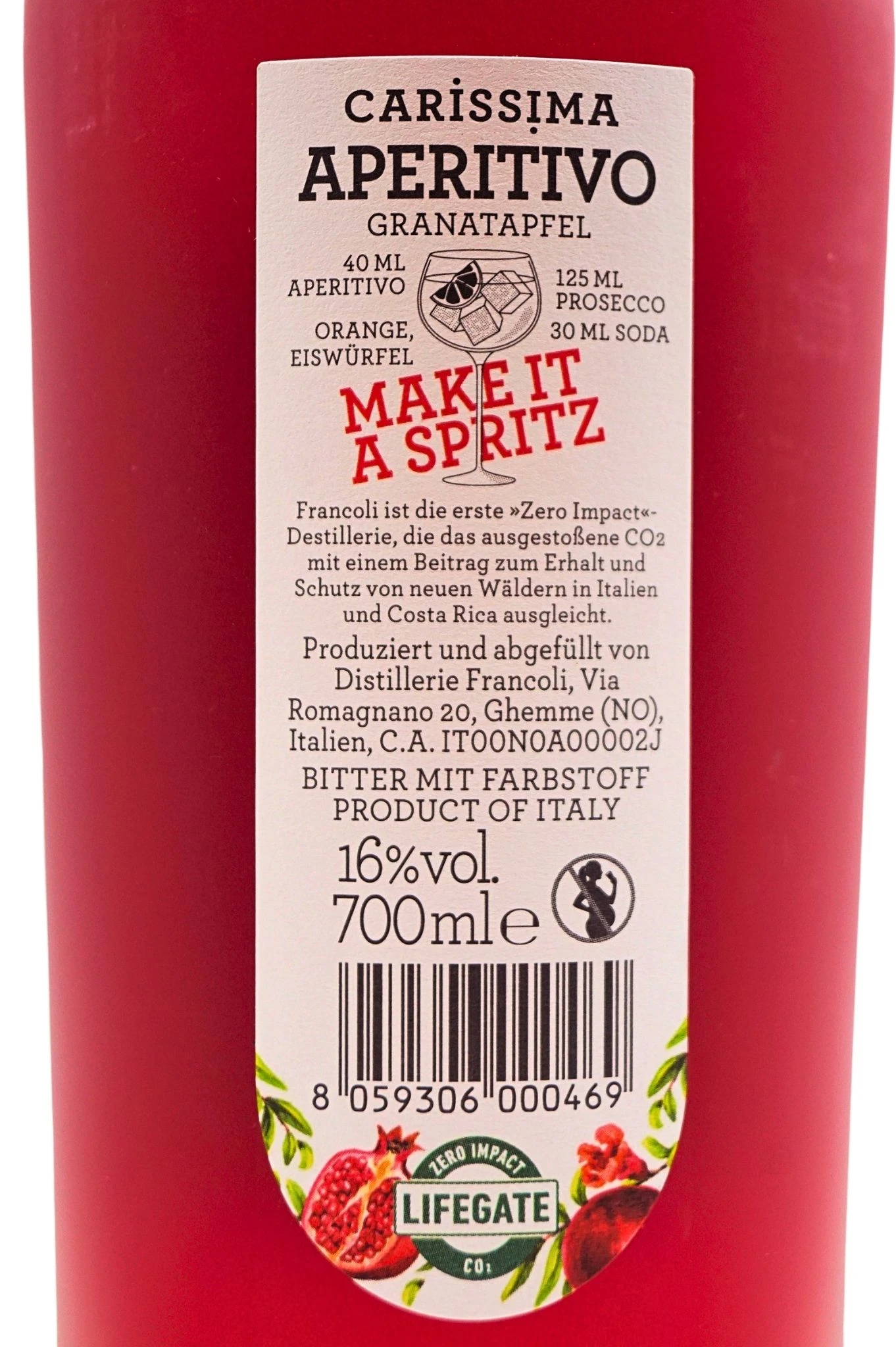 Der Carissima Aperitivo besteht im Kern aus Essenzen frischer Granatäpfel sowie der Sauerkirsche.