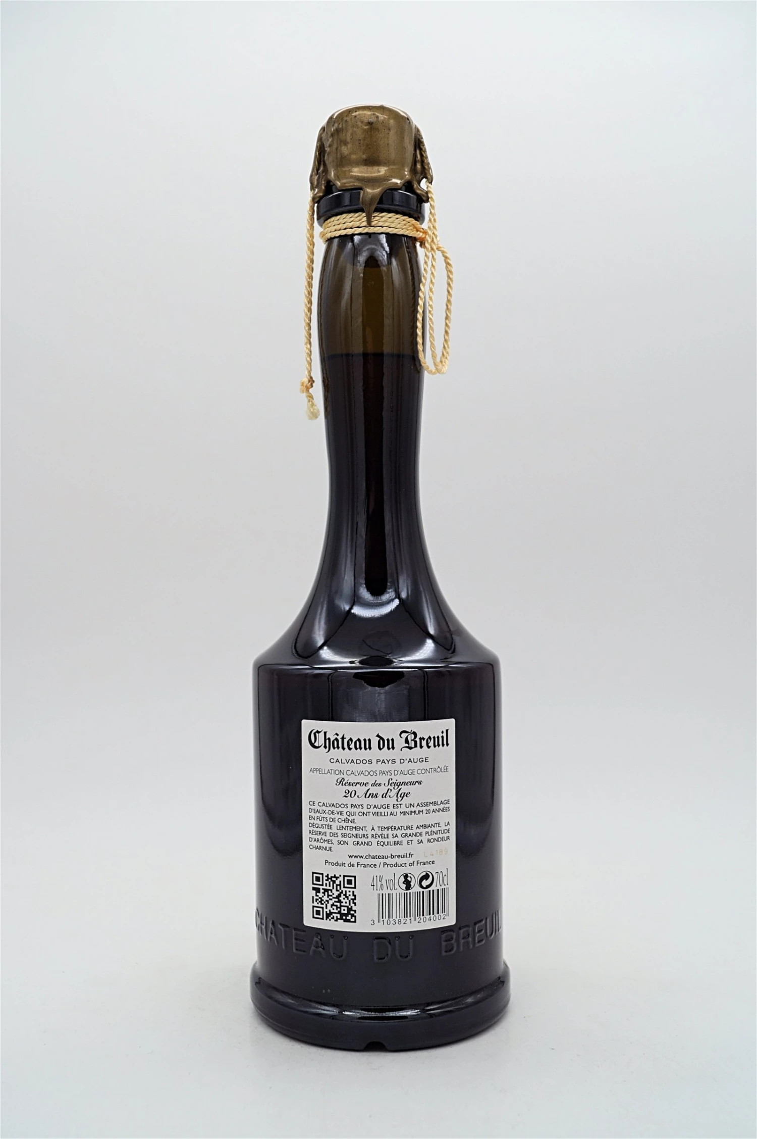 Es handelt sich um eine Mischung aus Calvados im Alter zwischen 20 und 25 Jahren, die 41% titriert. Sie wurden unter den edelsten und ältesten Calvados des Château du Breuil-Kellers ausgewählt. Durch seine sehr bernsteinfarbene Farbe und seine Stärke in Tanninen bringt es das Vergnügen der Rundheit seiner Aromen. Ein angesehener, anmutiger und geschmeidiger Calvados. Für die Kenner und Amateure alter und hochwertiger Spirituosen. Mit engen Freunden oder Kennern probieren, wo es nach einem guten Essen oder vor dem Kamin Wunder wirkt.